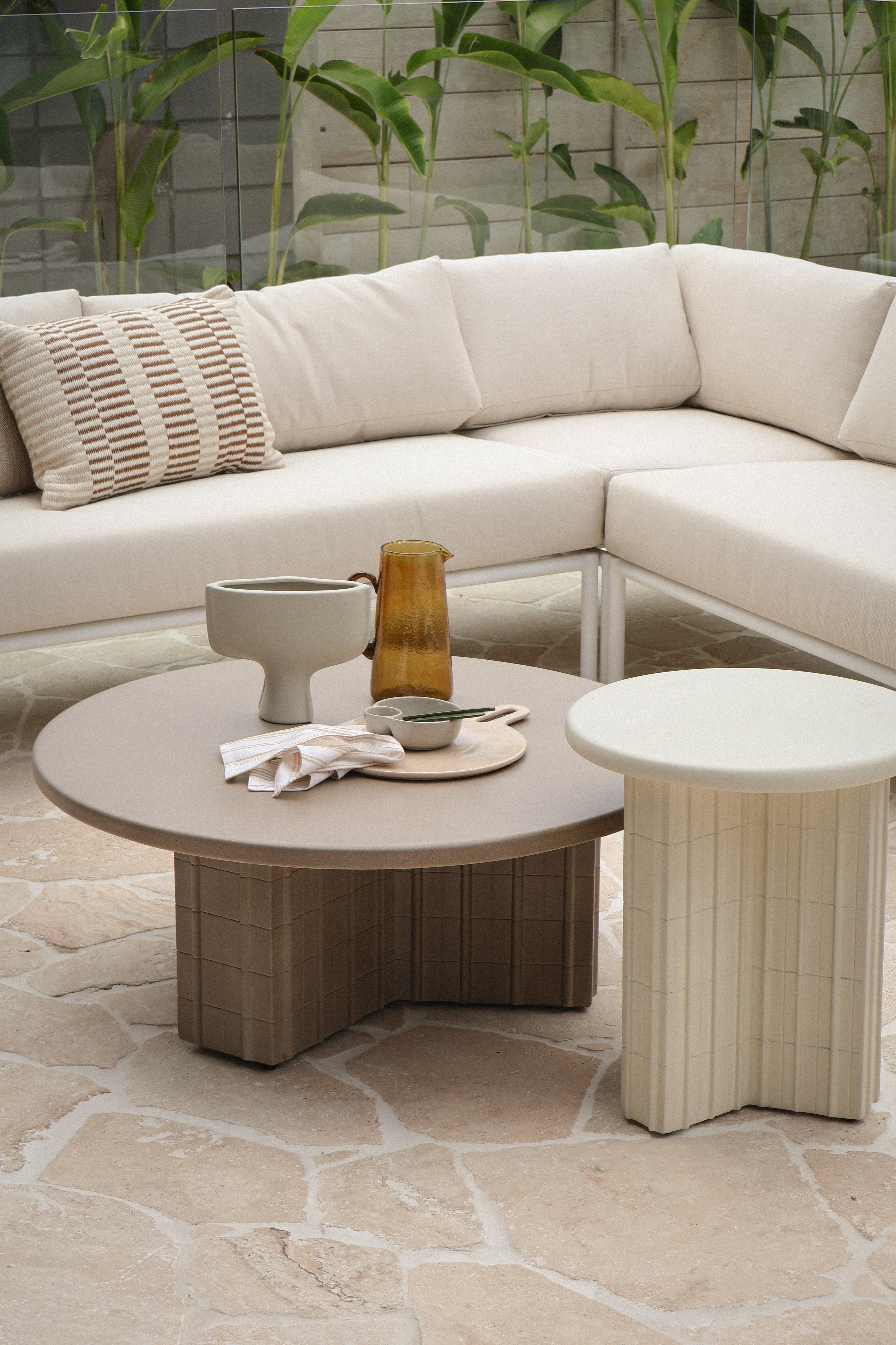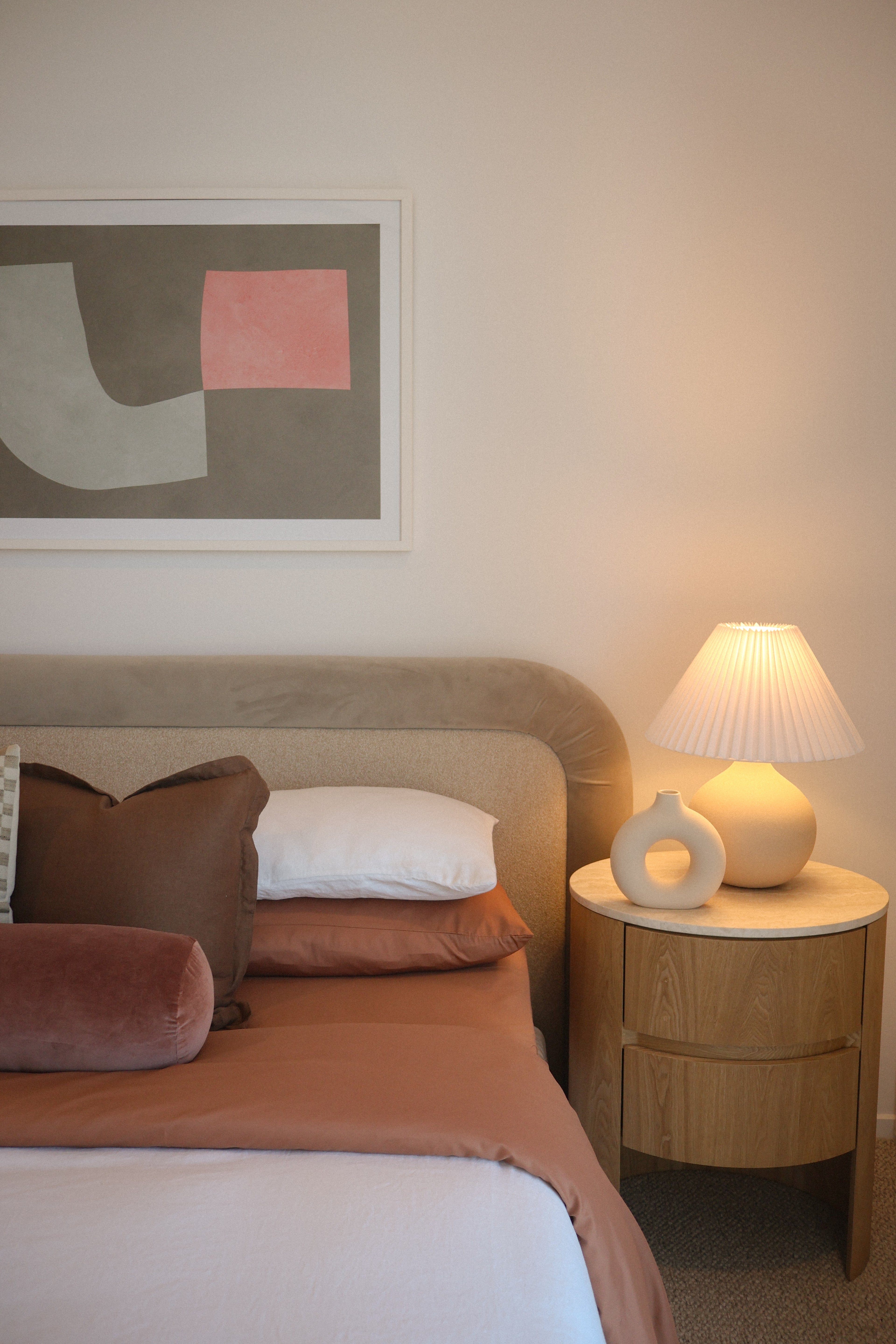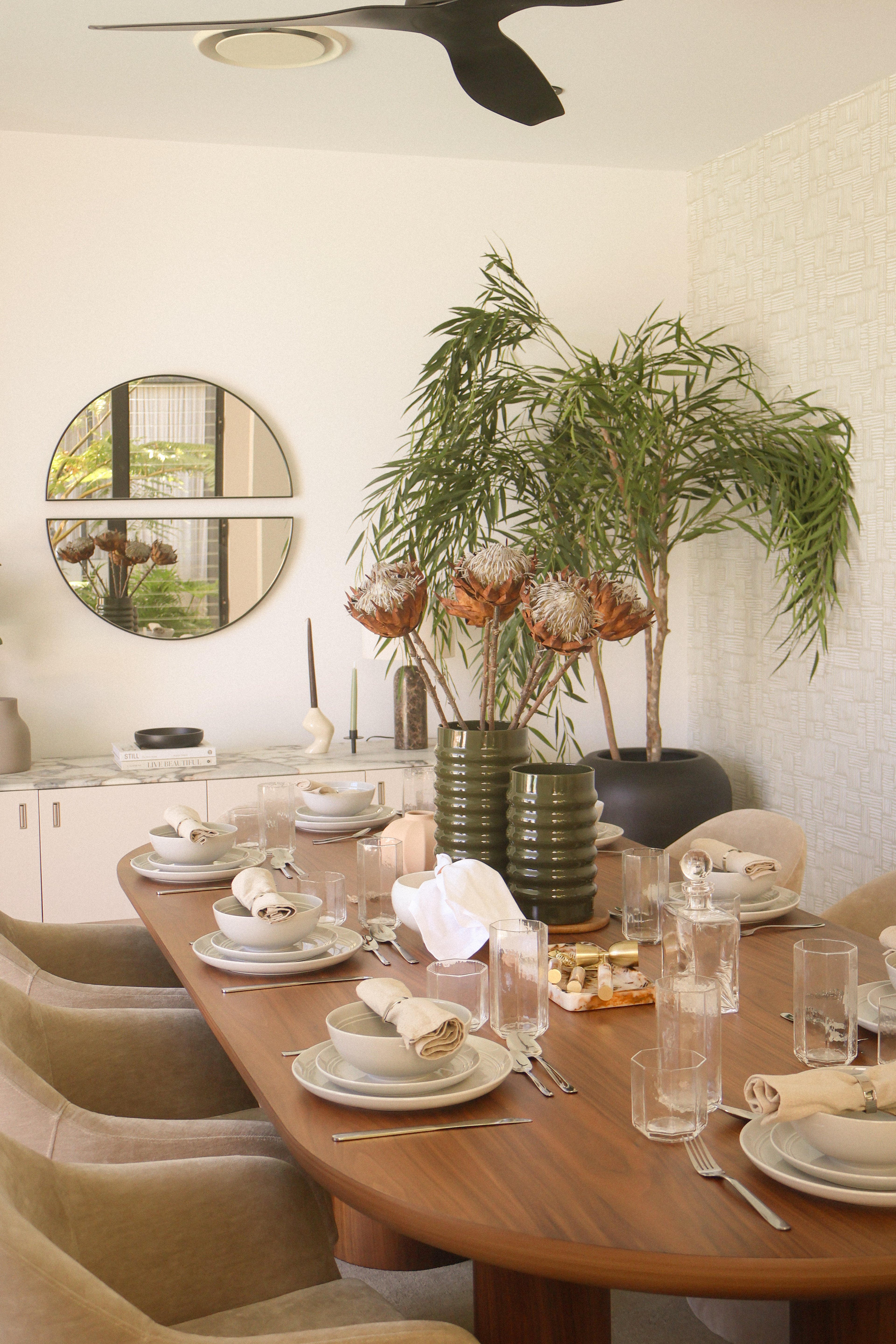 Our styling responds to this dialogue between strength and softness. Layered materials, organic forms, and a grounded neutral palette were carefully selected to complement the architecture, enhancing the home's moody elegance while ensuring it feels welcoming, liveable, and deeply considered.
