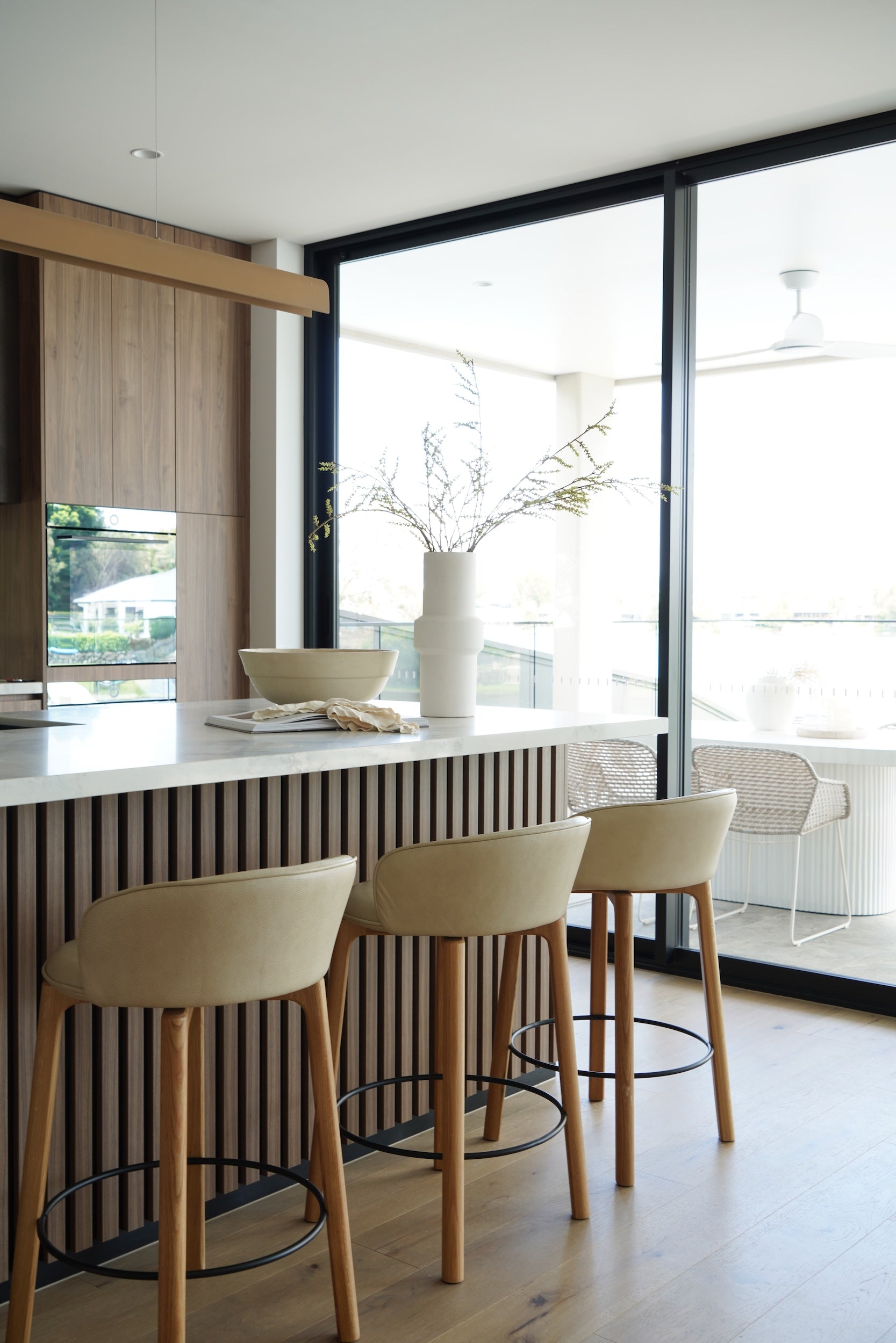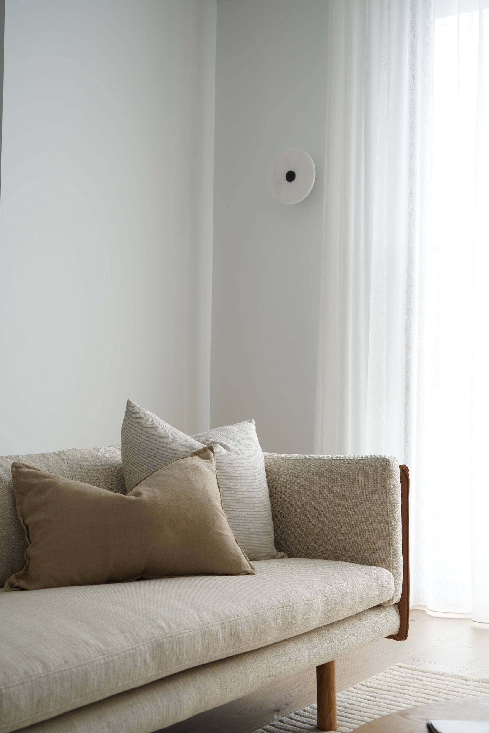 Inside, every space has been thoughtfully styled to reflect both comfort and sophistication — from the layered textures of natural stone to the warmth of wide timber floors, all enhanced by bespoke furniture selections that bring each room to life. Sunlight streams in through large panes of glazing and Velux skylights, creating an ever-changing interplay of light across soft textiles, sculptural pieces, and elegant finishes.