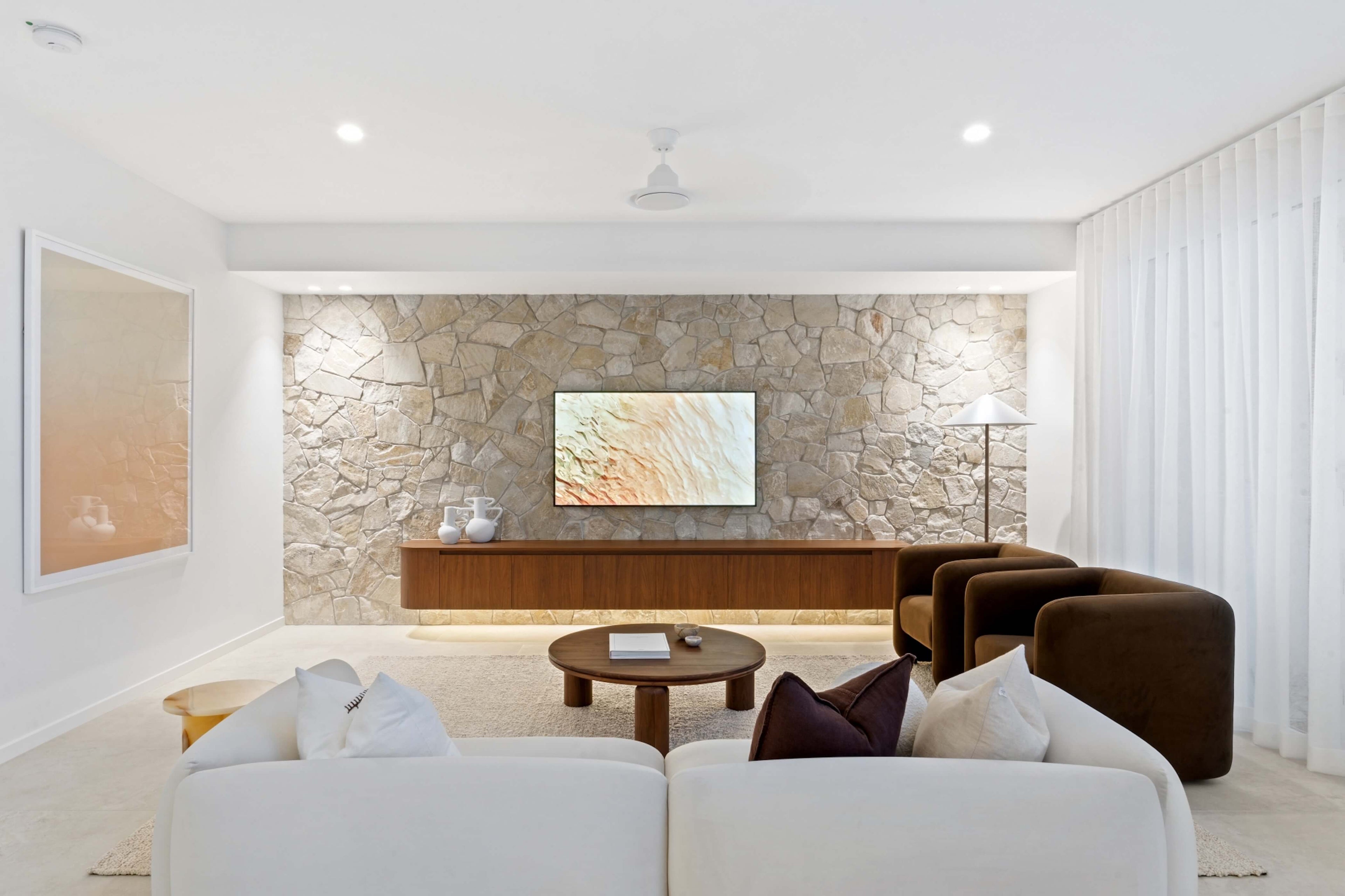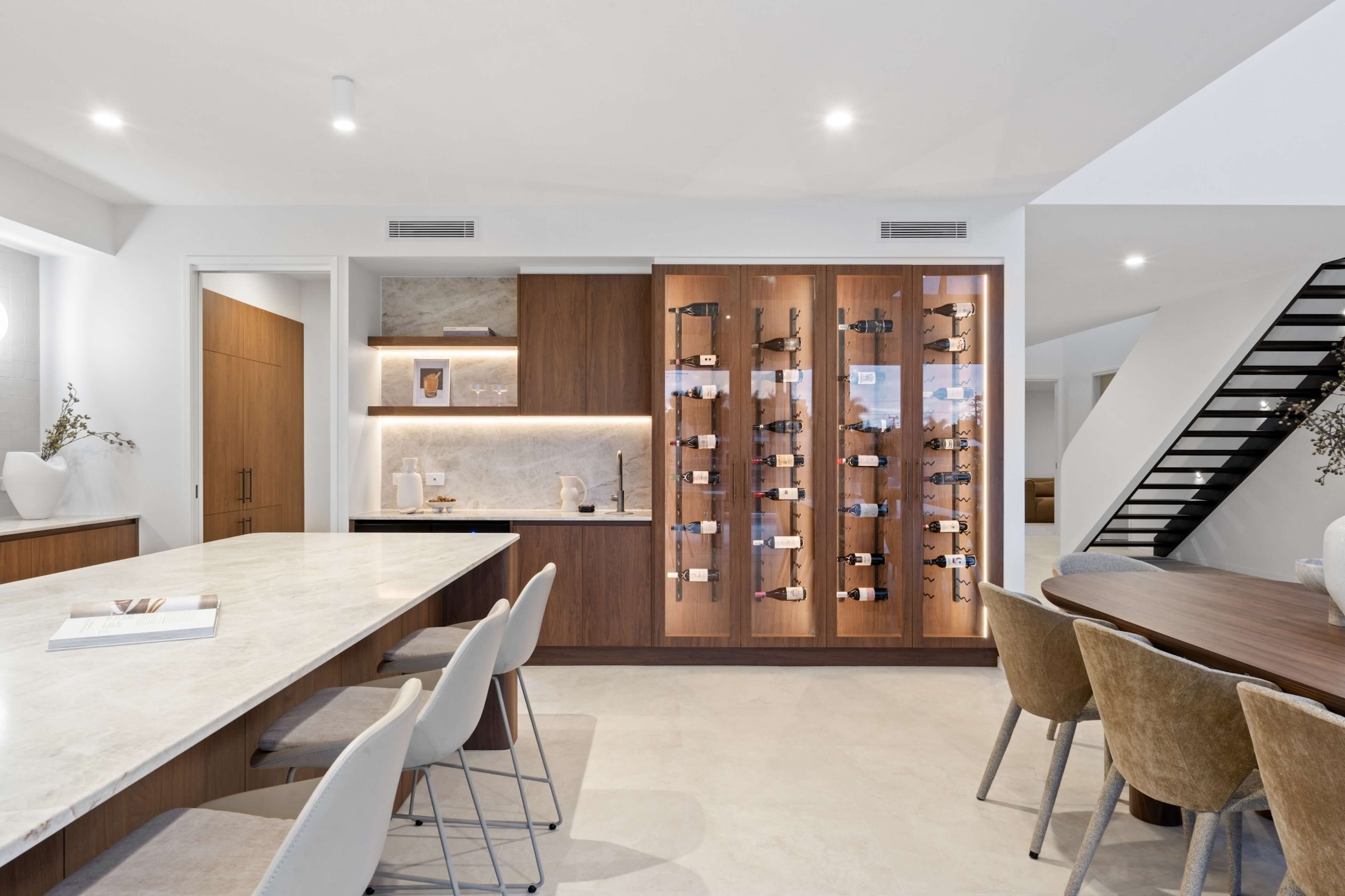 A showcase of modern coastal living, this residence exudes warmth, elegance and depth. Featuring rich walnut timbers, marble accents and textures throughout, the home is designed for both family life and effortless entertaining. The styling reflected this with earthy tones and pops of white in the contemporary furniture and accessories, allowing potential buyers to imagine what lifestyle this home can provide.