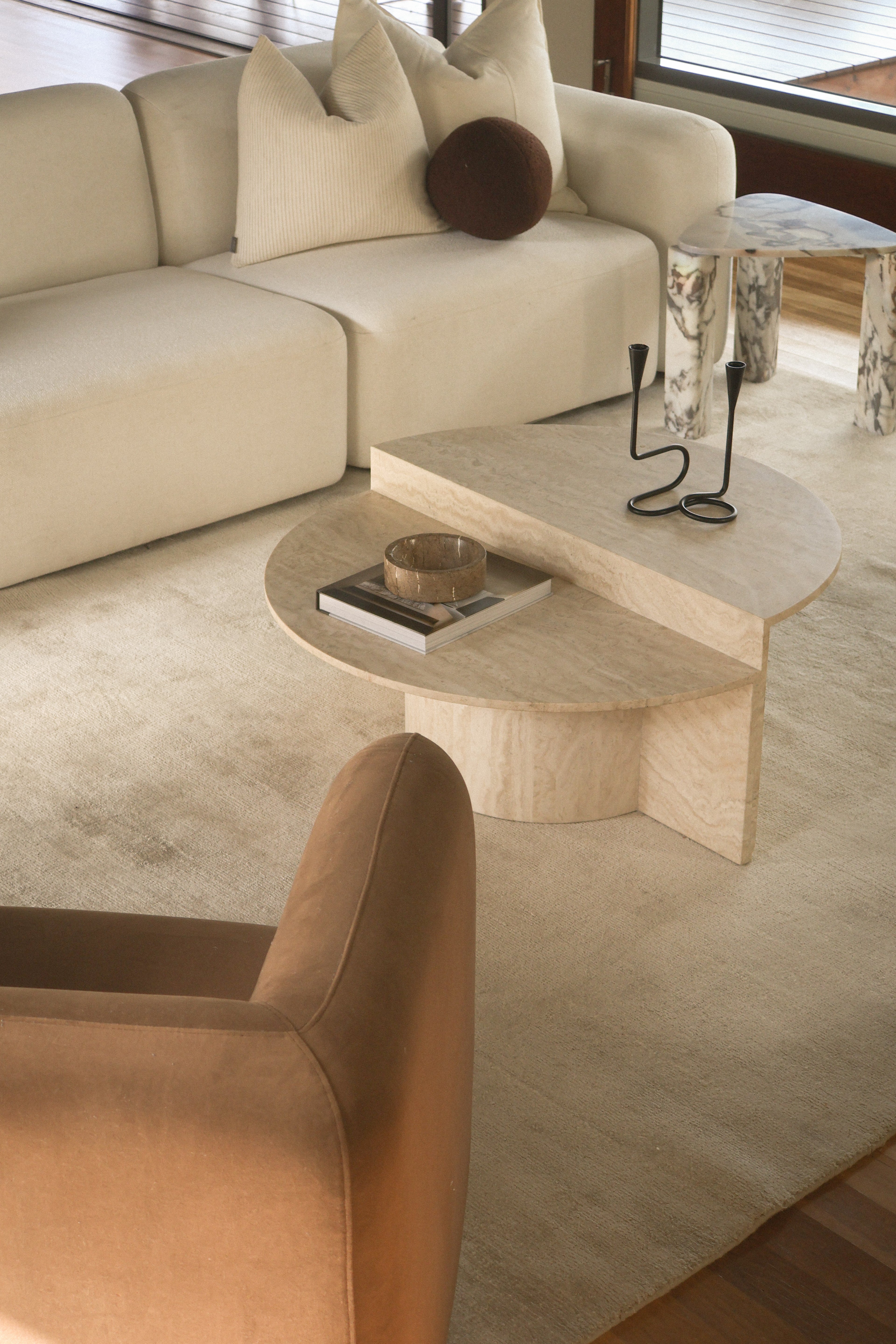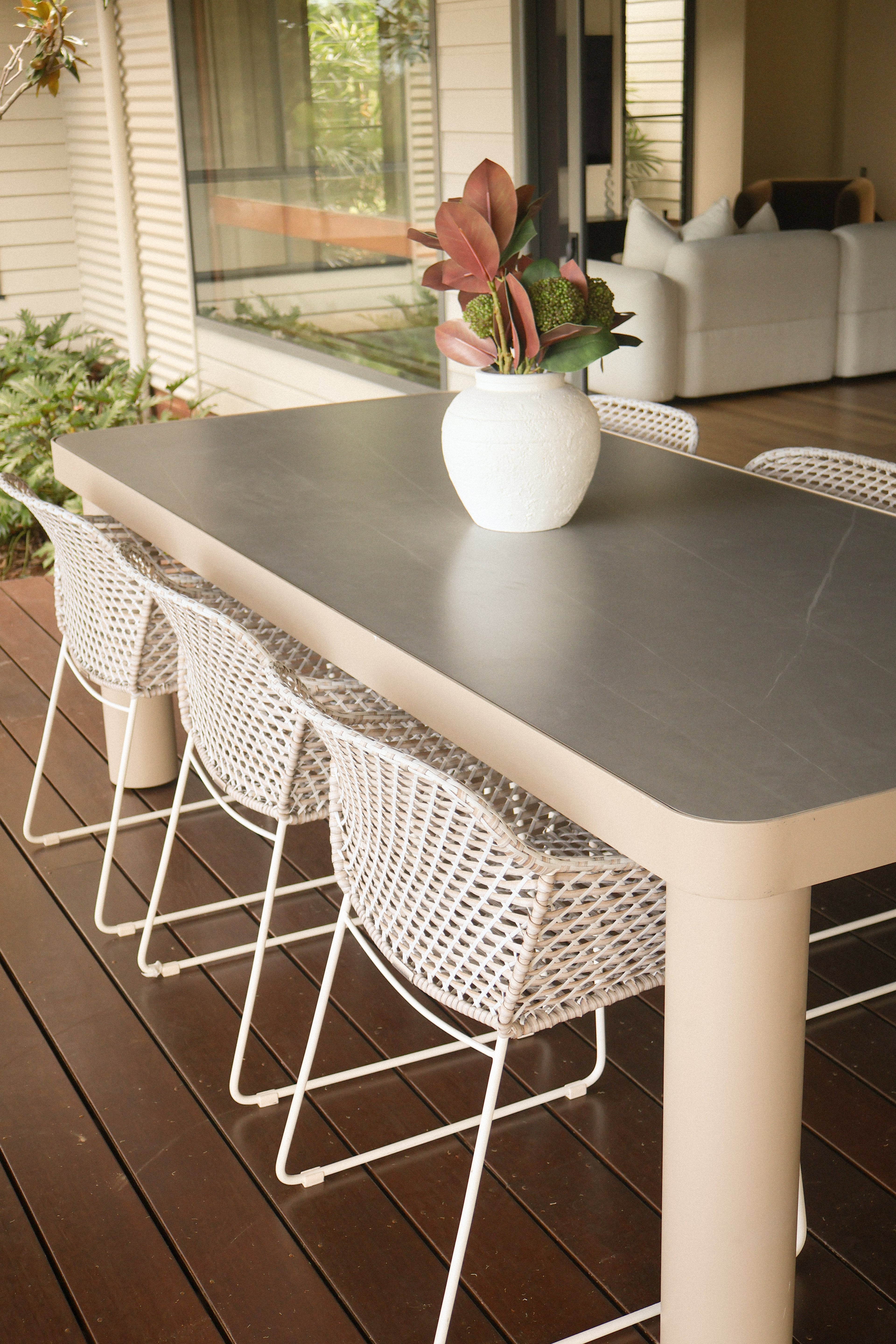 Throughout, the styling softens the architecture without competing with it. Layered neutrals and tactile materials create warmth and comfort, reinforcing a feeling of relaxed. grounded living.