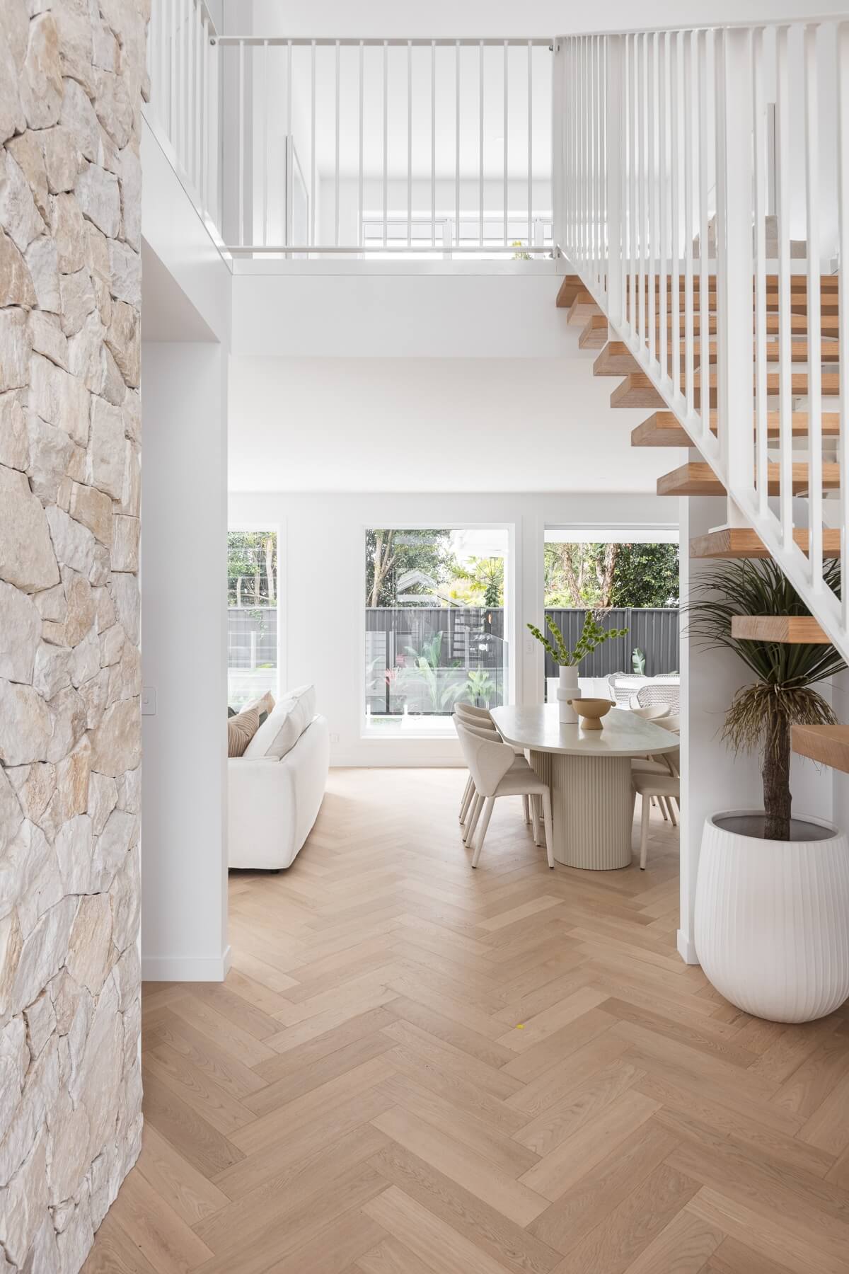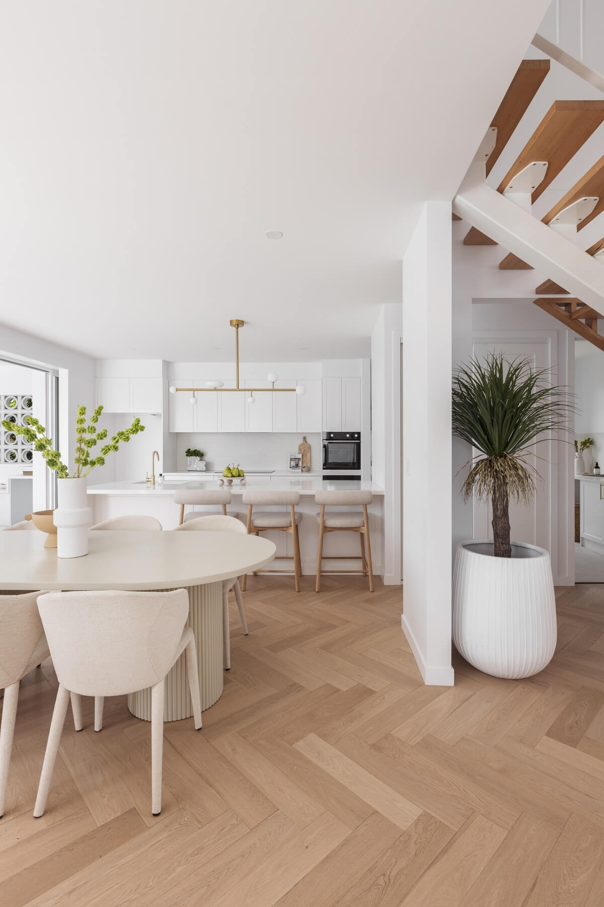 An inspired take on coastal Hamptons, introducing the home that has it all. An elevated meets effortless aesthetic, the interior features crisp whites paired with subtle cool tones to evoke a sense of calm. Natural materials like stone and timber are thoughtfully used to bring a relaxed, organic feel to the home, reflecting the beautiful Palm Beach surroundings. The BH team have cleverly used layering, statement artwork and greenery to make the home feel distinctly liveable.